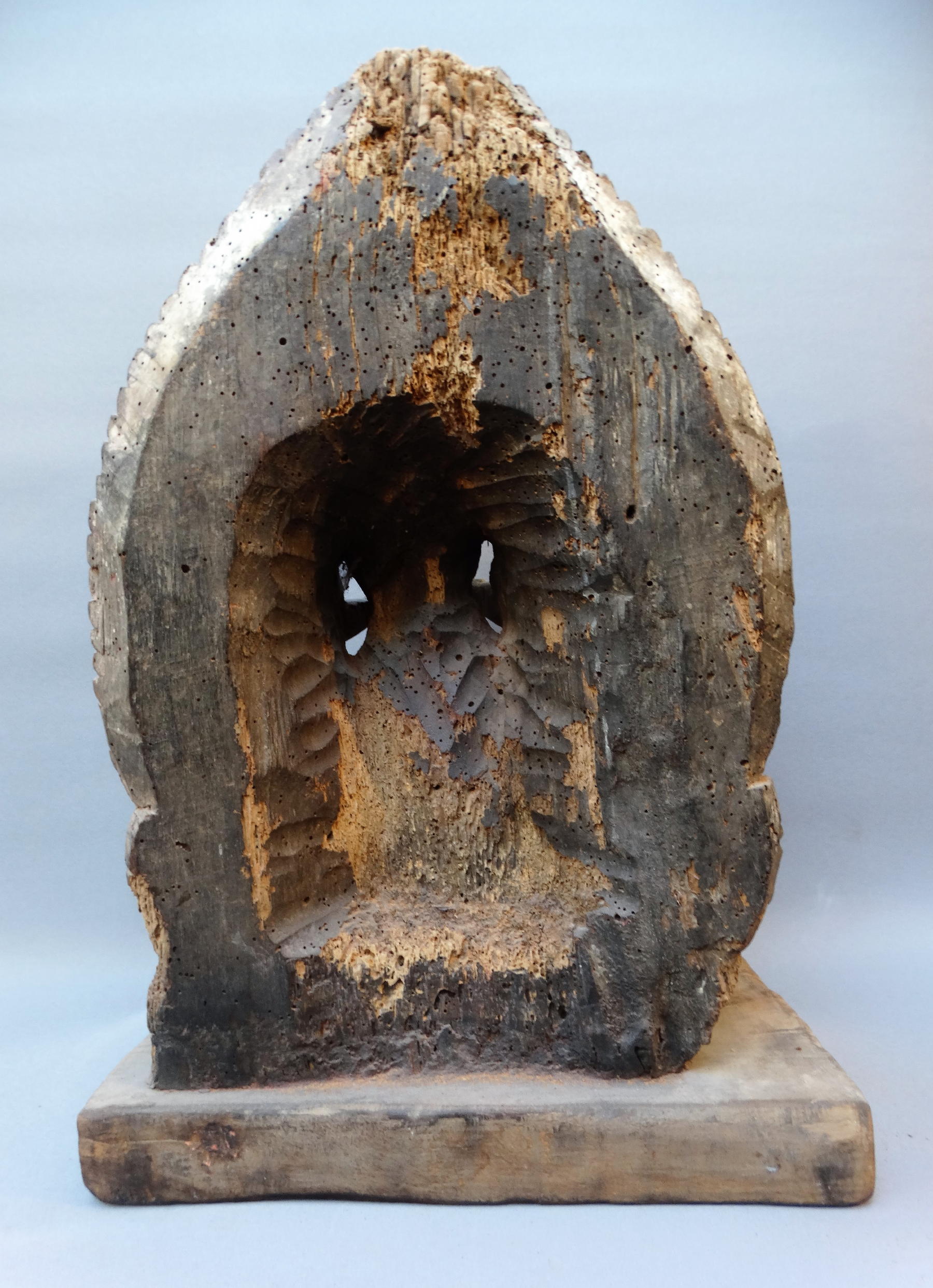 wood, traces of red puja-powder