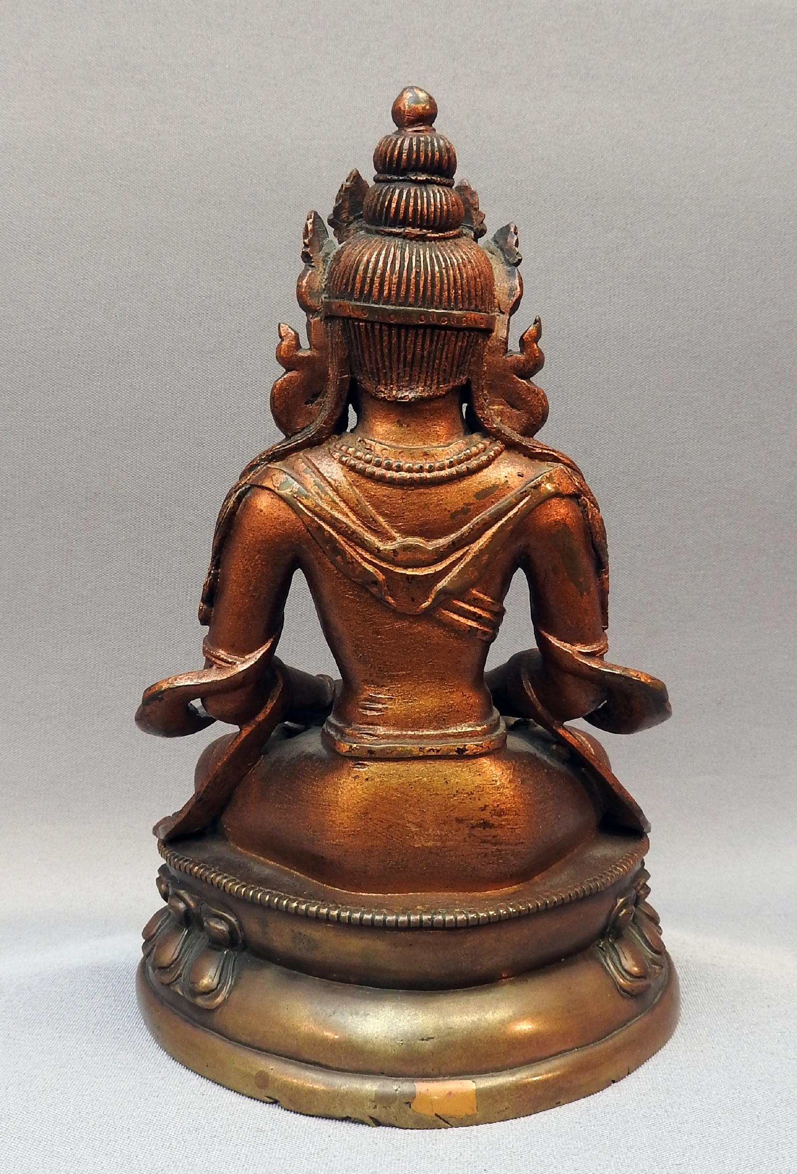 bronze, top half gilded-laquered; inlaid with turquoises