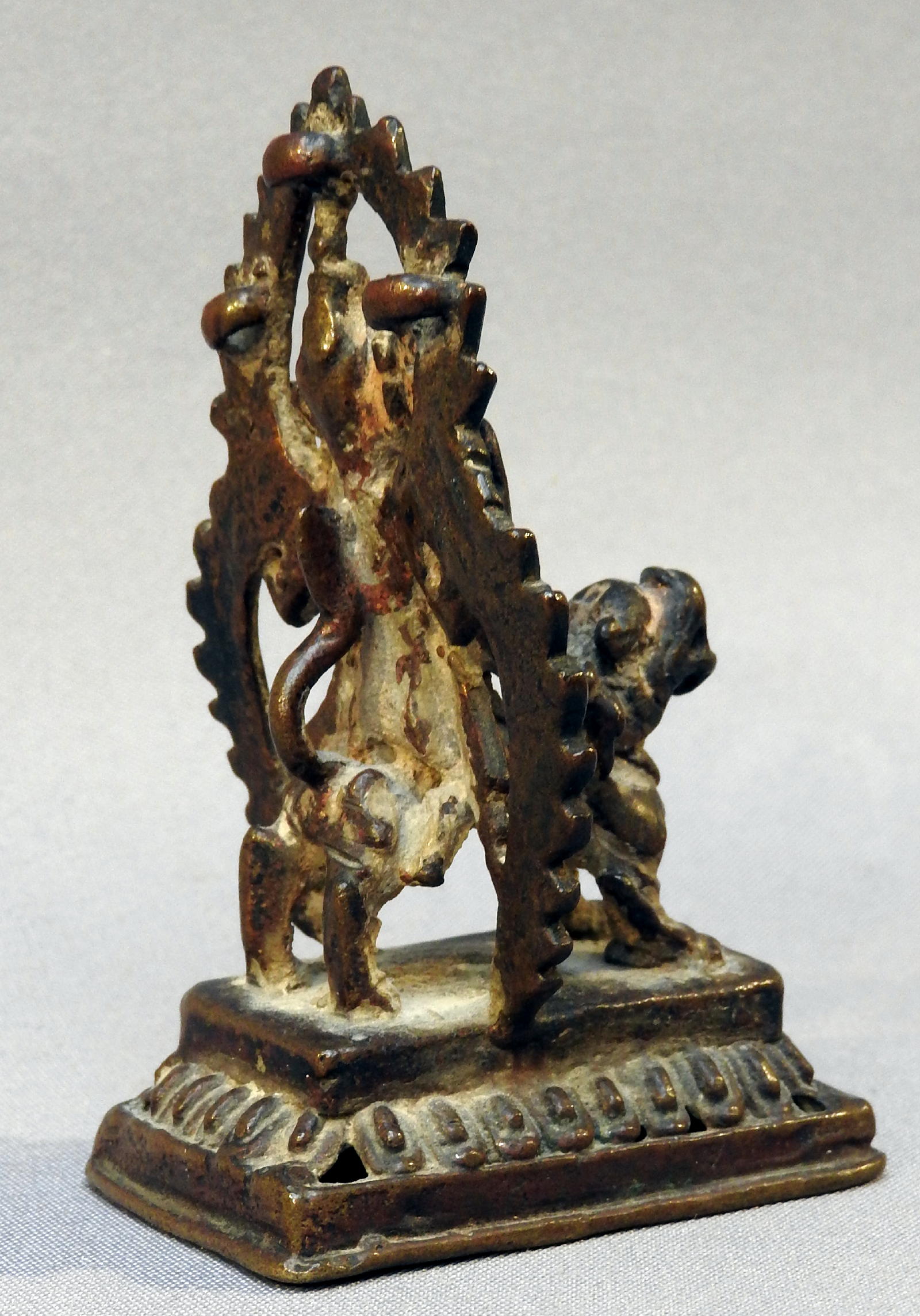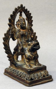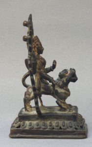 charming small bronze of Durga, riding her lion