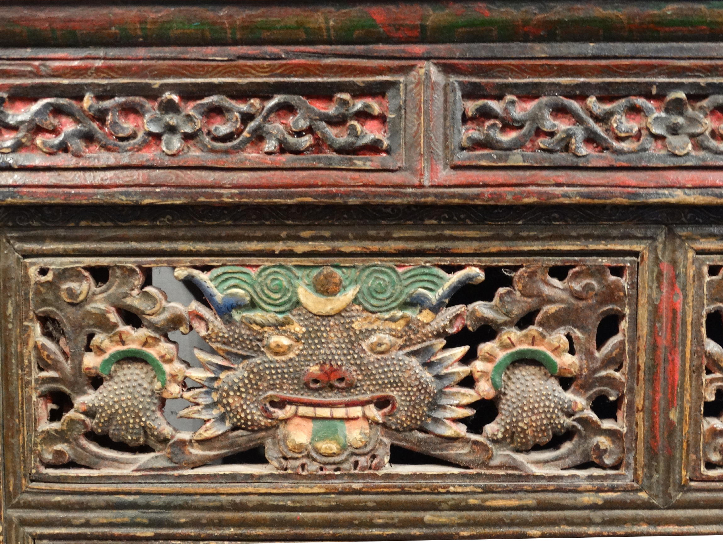 carved and painted wood; kirtimukha-heads and -hands hightened with gesso
