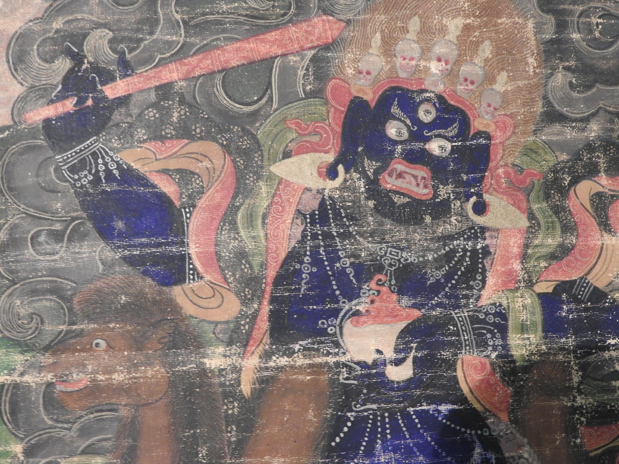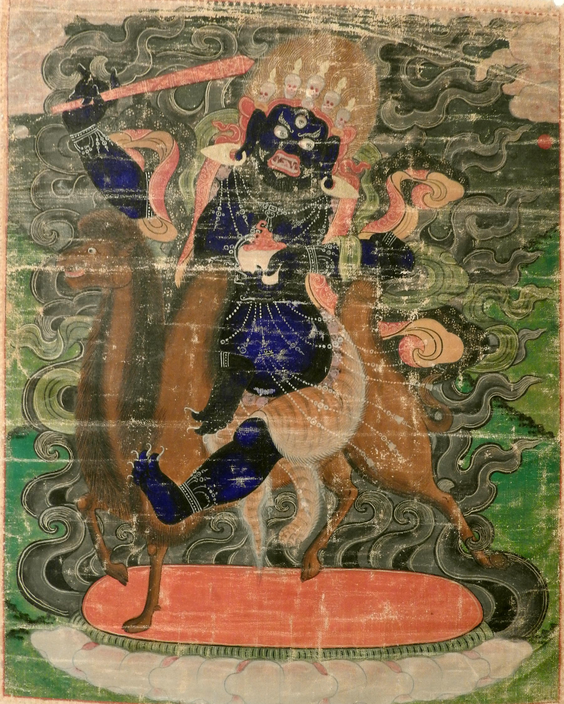 It is rare to find her as the main figure on a thangka; normally she is seen below Palden Lhamo.