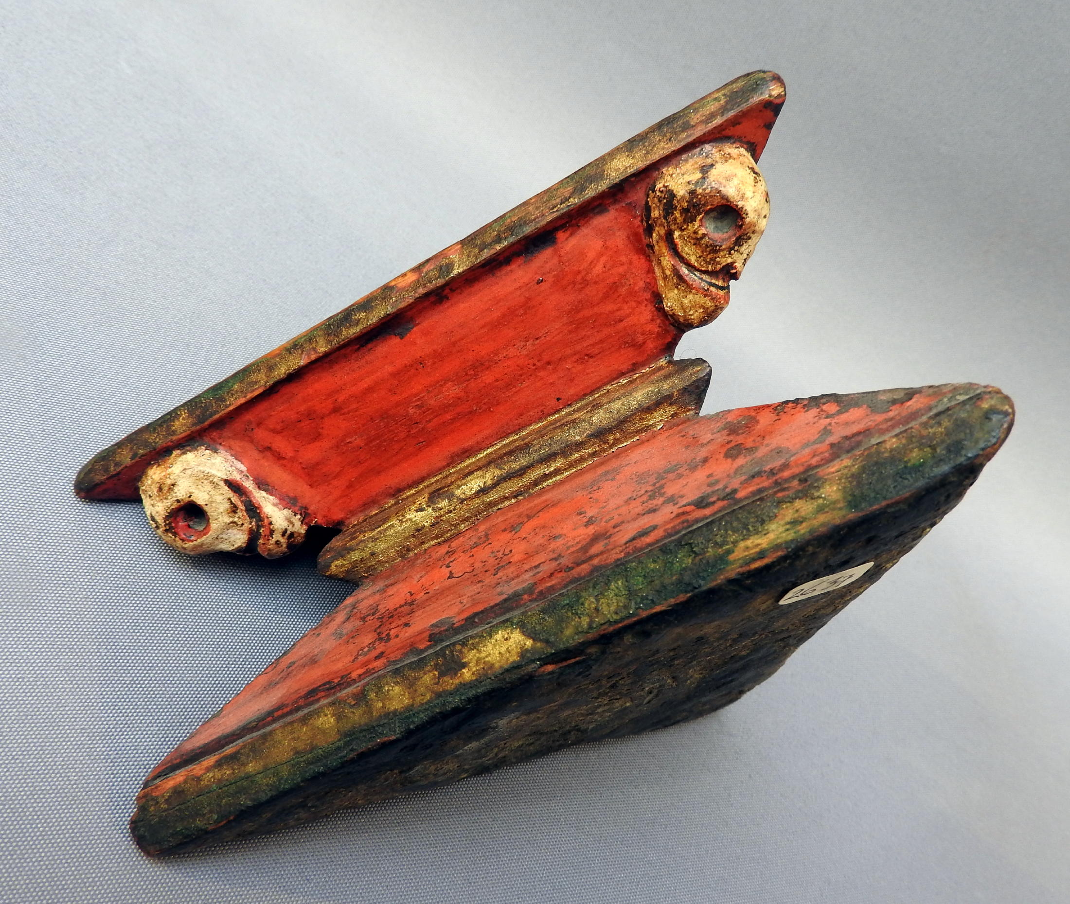 human scull; painted wood