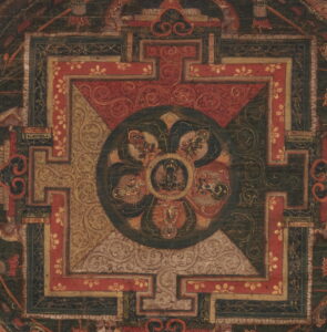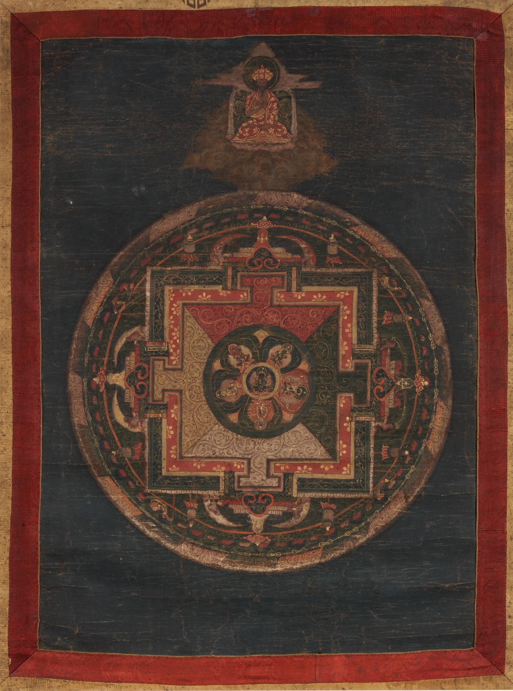 this style is typical for Bhutan: only a mandala, against a dark (empty) background)
