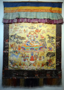 The thangka is in the original, very ornate, mounting.