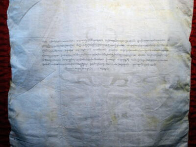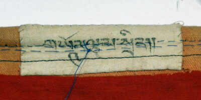 On the backside a long inscription describing the deity and the specific offerings to him; above a small text, indicating the place this painting had in the complete series.