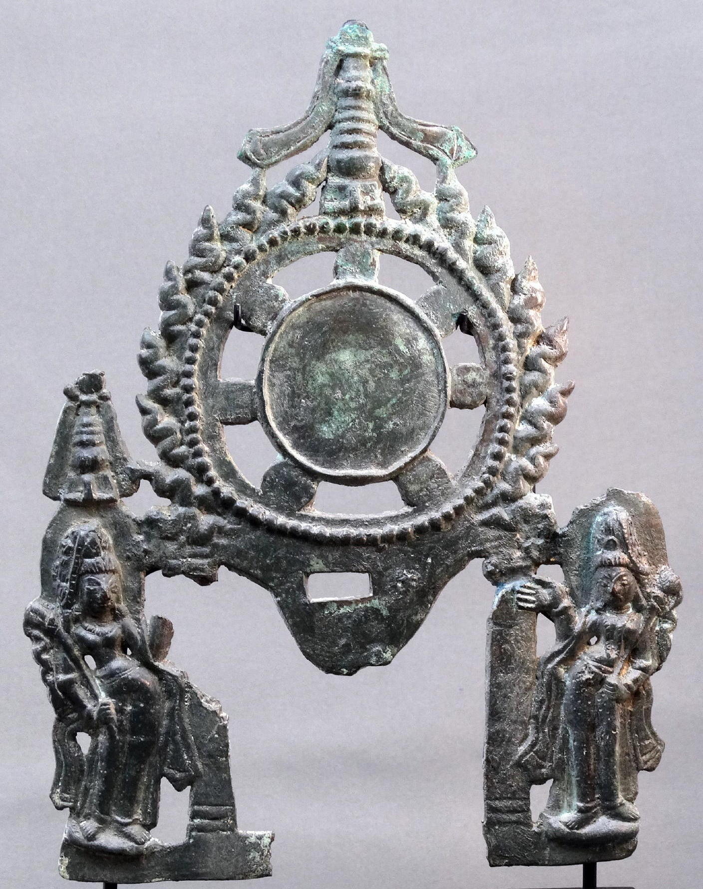 A very rare and almost complete prabhamandala, with two female bodhisattvas on both sides.