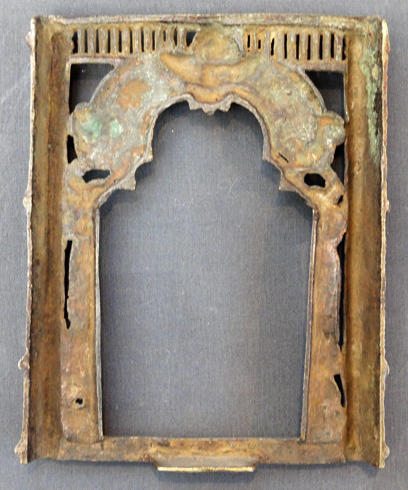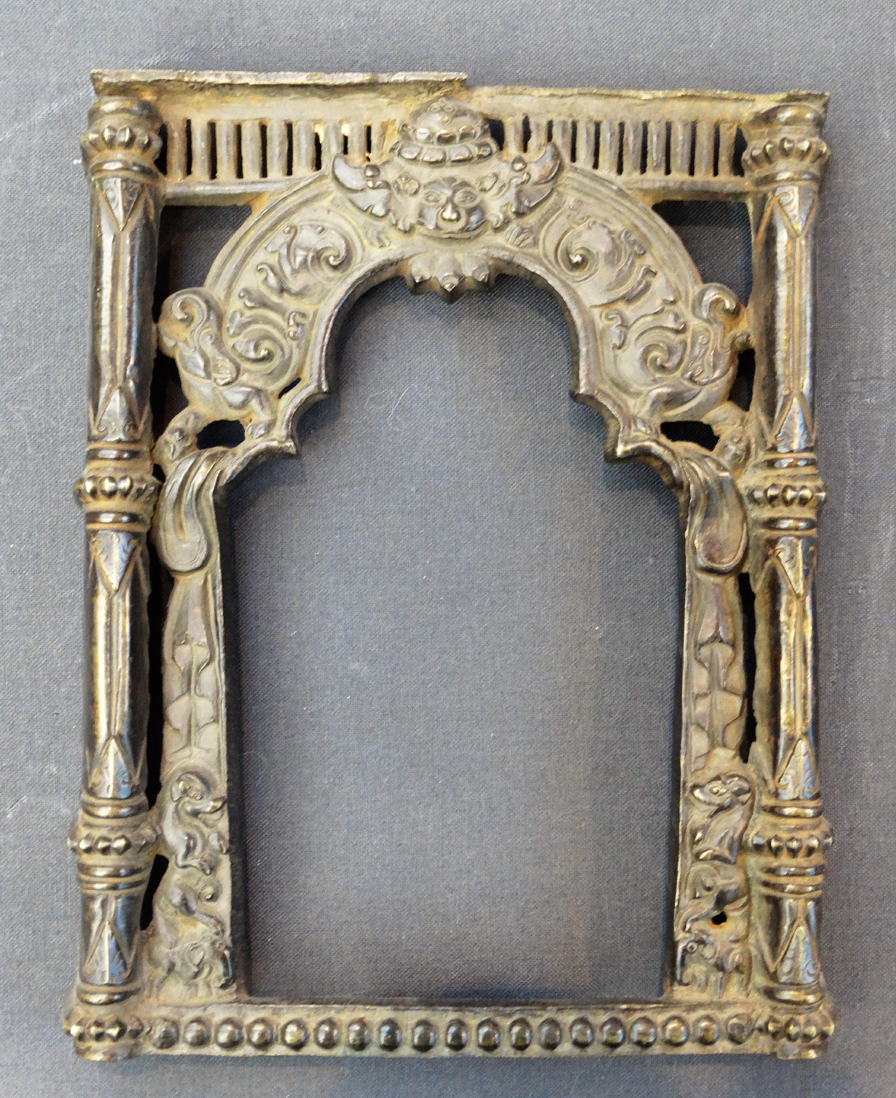 In top one sees a kirtimukha and two makaras; bottom two standing lions (vyalas) on small elephants.