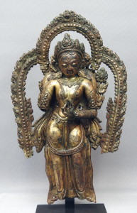 beautiful and large repoussé. At the backside the head is covered, clearly to contain dedication-material. This repoussé has been used in Tibet?
