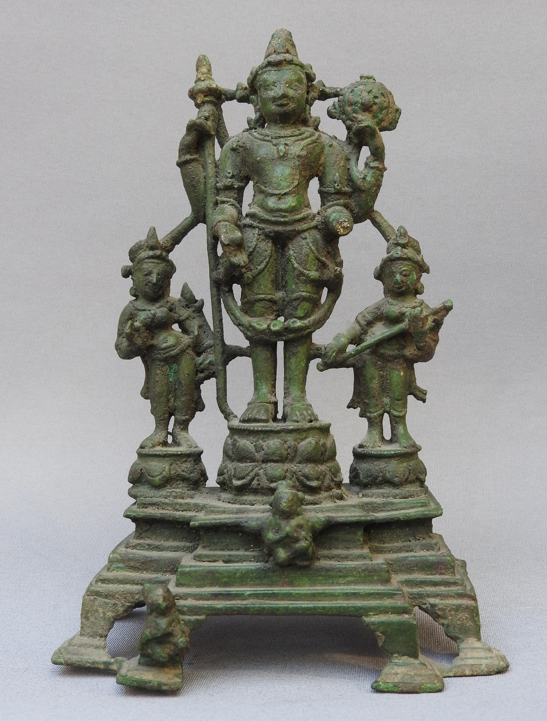 The left hand of Vishnu is missing; one leg at the backside is missing