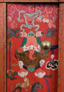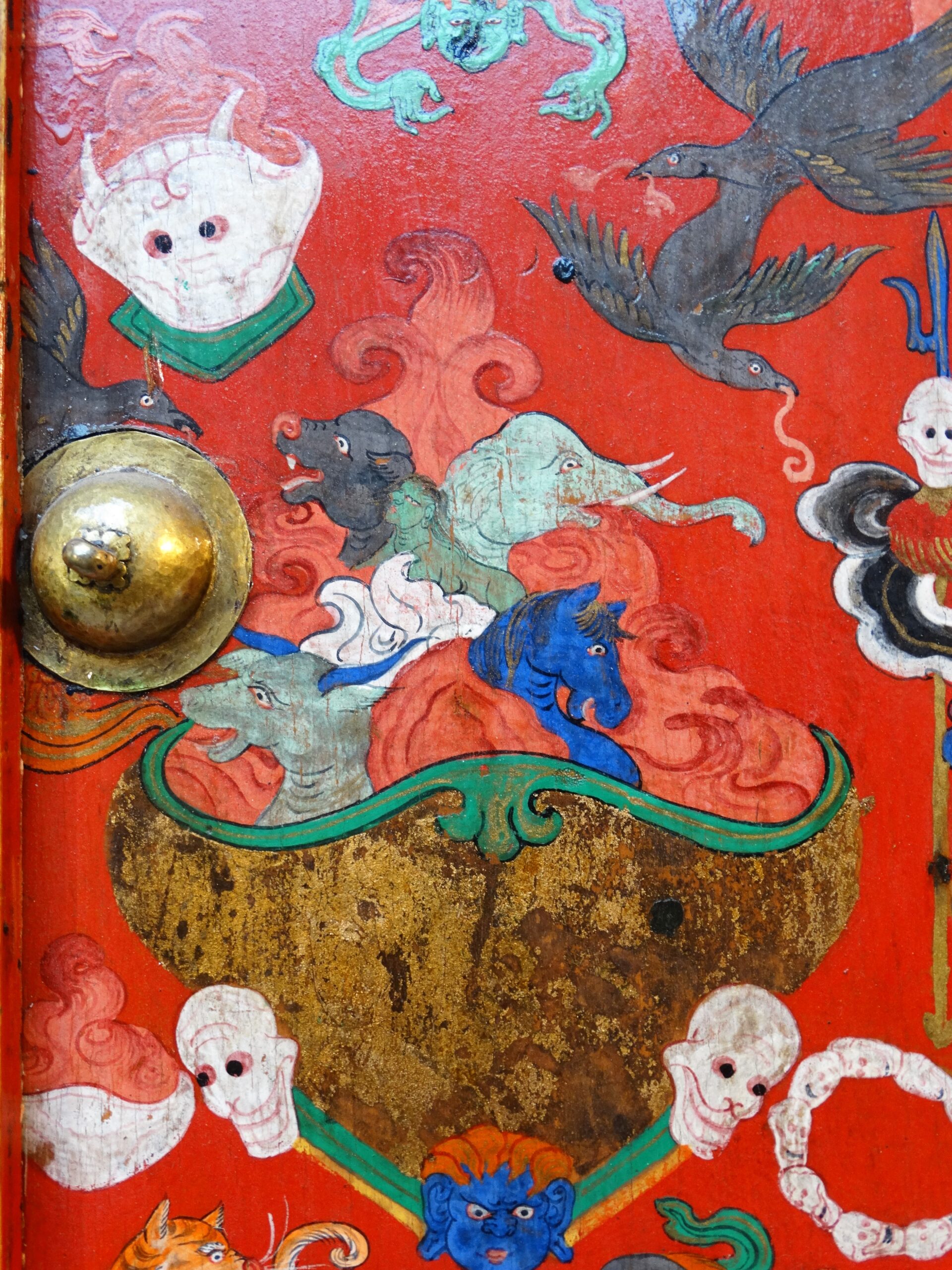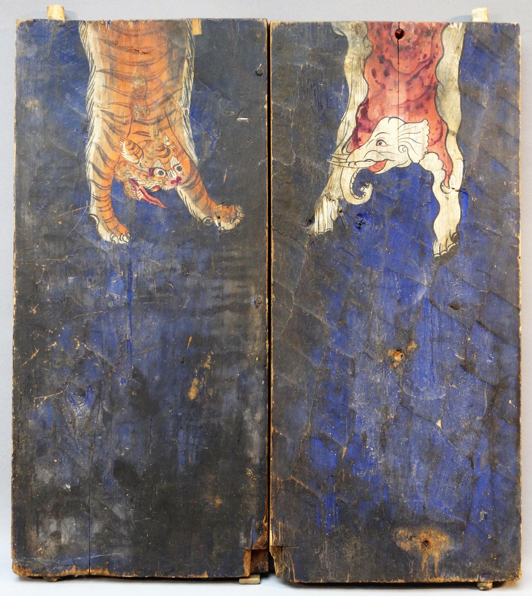 The inside of the front-doors are painted, crudely, with the skins of a tiger and an elephant.