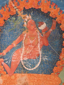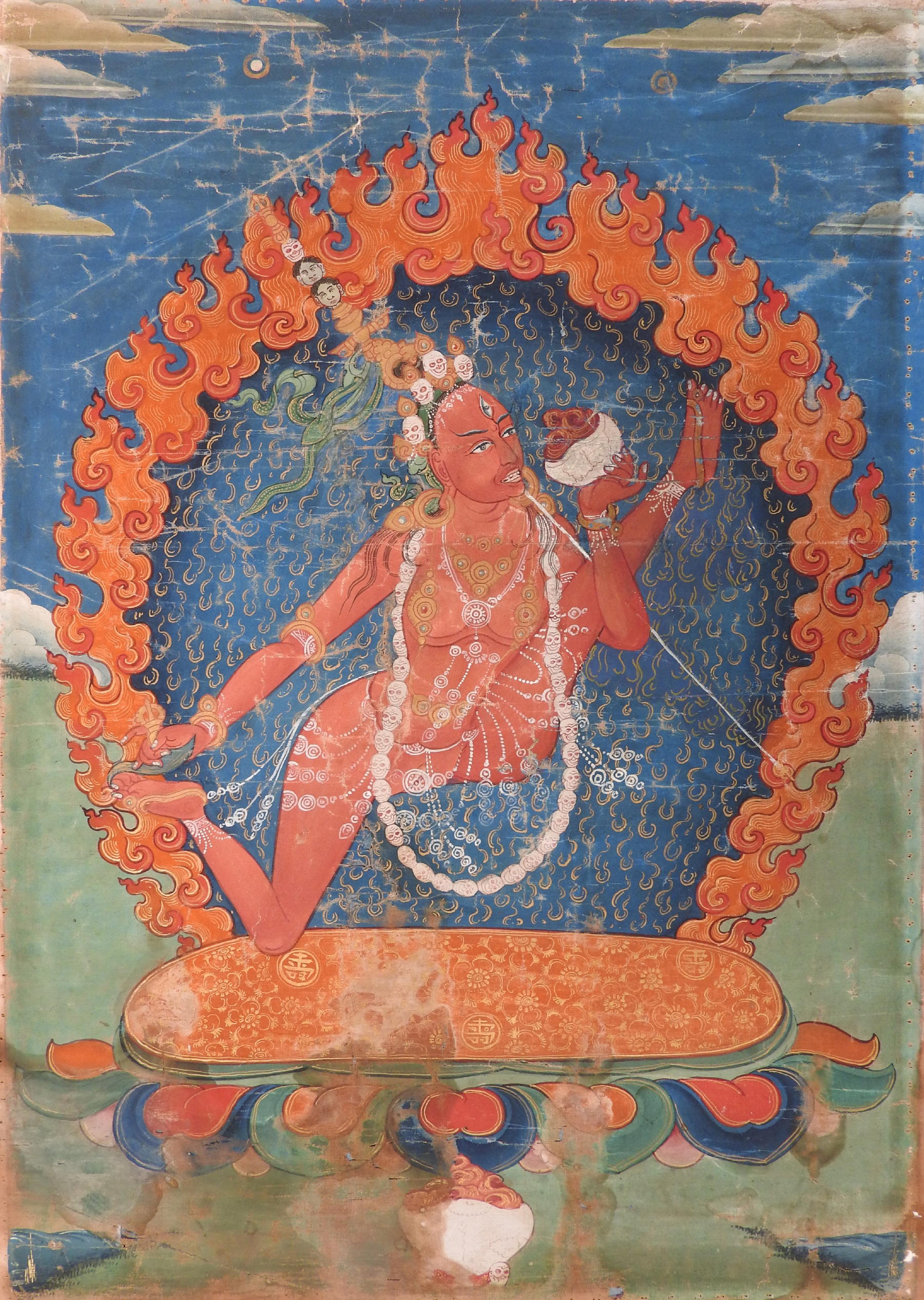 A rare, independant representation of this `sky-dancing’ yogini, one of the four acolytes of Vajravarahi.